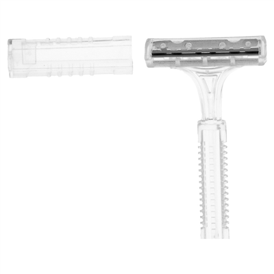 Chaque rasoir mesure 10 cm de long, une taille standard et aisée à manipuler. Ils sont emballés unitairement dans un sachet transparent fabriqué en polyéthylène haute densité (HDPE). Ce plastique est reconnu pour sa robustesse et sa capacité à créer une barrière protectrice efficace contre les éléments extérieurs. Ce conditionnement hermétique garantit que chaque rasoir reste propre et intact jusqu’au moment de son utilisation par le client.